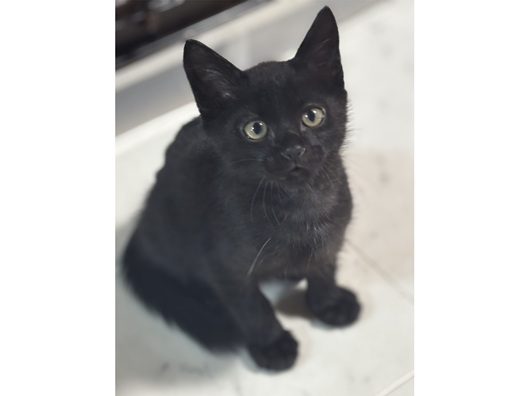 • 先日同じ場所で保護されたジョージ君に引き続きスタッフの自宅駐車場に見たことのない子猫が突然現れたため捕獲機をしかけ保護しました。ジョージ君の兄妹のようです。怖がりですが、撫でるとゴロゴロ言うようになった可愛い黒猫の女の子