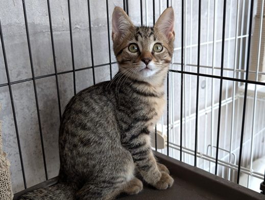 • 倉庫に20匹くらい猫が集まってきていると相談を受けTNRの予定でしたが、戻せる環境ではないため全頭受け入れることとなりました。ちょっと怖がり、丸顔の可愛いキジトラちゃん。