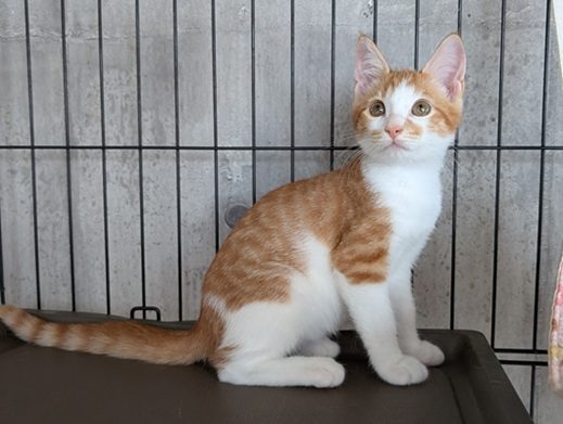 ある公園にガリガリの子猫がいると相談があり保護しました。人馴れした可愛いムギワラの女の子です。左腕骨折のため手術を受けましたが、後遺症はありません。